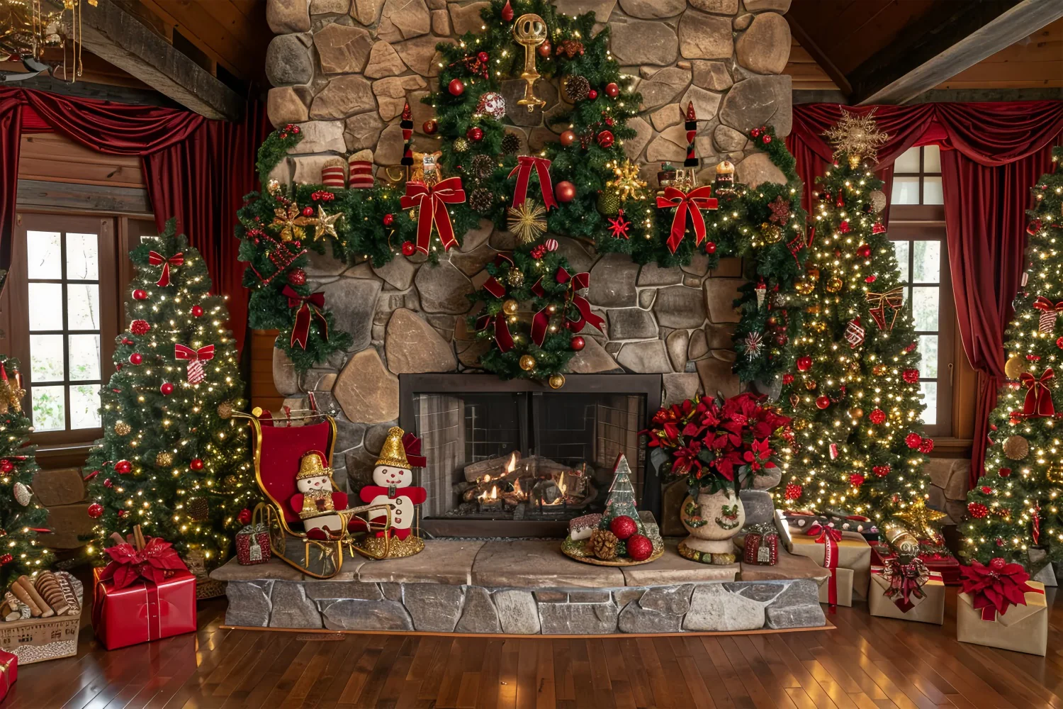 Christmas Mantel with Trees and Lights Backdrop BRP8-64